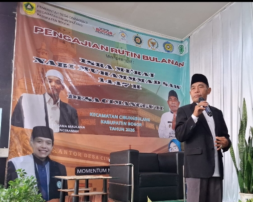 BOGOR, ANGKARANEWS.ID – Masyarakat Desa Cimanggu II, Kecamatan Cibungbulang, Kabupaten Bogor, menggelar acara istimewa yang memadukan Pengajian Rutin Bulanan dengan Peringatan Isra Miraj Nabi Muhammad SAW 1447 H. Kegiatan berlangsung khidmat di Aula Desa setempat pada Sabtu, 31 Januari 2026.