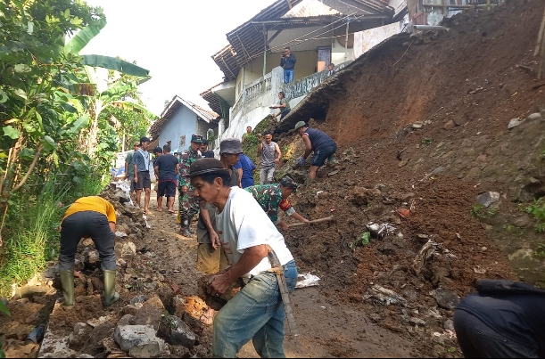 Koramil 0621-17/Nanggung melalui Danramil Kapten CBA Syahril menyampaikan bahwa pihaknya bersama masyarakat bergerak cepat melakukan gotong royong agar akses jalan segera kembali normal.