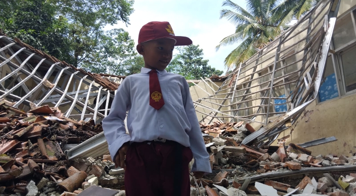 “Aku minta sekolahnya dibangunin, karena sekolahnya rusak, roboh, atapnya bolong besar dan temboknya hancur besar. Aku minta sekolahnya segera dibangun agar bisa belajar di dalam kelas,” ungkapnya, Rabu (3/9/25).