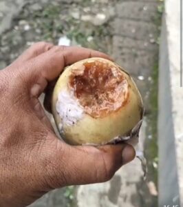“Sudah dua kali kejadian seperti ini. Kemarin telurnya belum matang, sekarang buahnya busuk,” ungkap Dava saat dikonfirmasi.